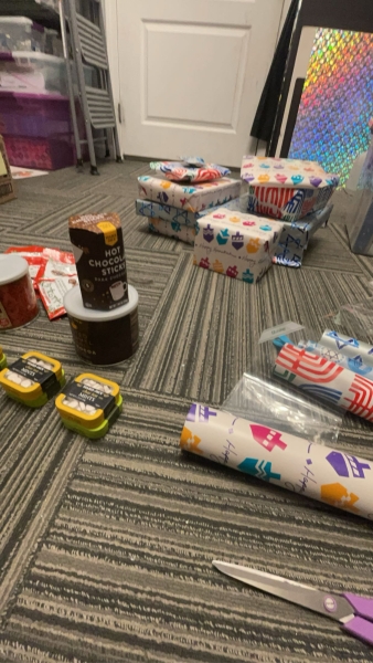Wrapping Hanukkah gifts!