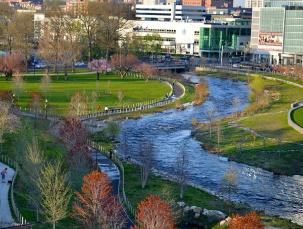 Swimming at the city's nearby river