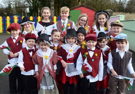 St David’s day ( or “dydd gwyl Dewi” in Welsh ) is on march 1st and is a traditional feast day. Dewi, is the patron saint of Wales. We celebrate the love we have for our culture and the heritage of our country. we dress up in traditional welsh clothing and wear daffodils and leeks. We also eat cawl and Welsh rarebit to celebrate the day. We sing traditional welsh songs in concerts and eisteddfods in schools and dance traditional welsh dances to folk music called “dawnsio gwerin’.