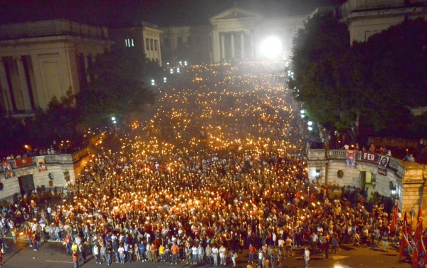 This is for those who like History :) La Marcha de las Antorchas (Literally- The march of torches) is a tribute to our apostol or national heroe José Martí. It was held for the first time at midnight on January 27, 1953, to await the coming of the centenary of his birth. Now, every January 27, University students reunit at the Univertity staircase (escalinata) at 8:00pm and we march in memory of Martí :)
